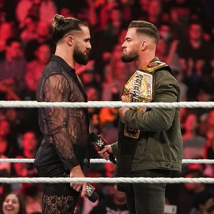 – Сегмент с Остином Тиори. Новоиспечённый чемпион США начал свою речь с вопроса «И кто тут теперь малыш?». Он упрекнул присутствующих тут фанатов в том, что они никогда не пытались понять его успеха, так как каждый раз с радостью были готовы его хоронить. Да, он не отрицает того, что у него в активе один из самых провальных кэш-инов в истории MITB. Но он не хочет жить этим прошлым моментом и быть посмешищем для остальных. Многие ему завидуют и не пытаются понять, что он добился куда большего в своём возрасте, несмотря на препятствия. Он не хочет более слышать от кого-либо, что он какой-то малыш, он победил за одну ночь Сета Роллинса и Бобби Лэшли, тех кто громче всех проявляли к нему неуважение и недооценивали его. Он тут уже не будущее, он тут теперь настоящее, это его реальность и никому не удасться этого изменить. Он больше не наивный малыш, он 2-кратный чемпион США. Он моложе, сильнее, голоднее, талантливее всех остальных, это его эра (что-то мне это напомнило) и все будут ему завидовать. Ему отныне на это плевать. Тут его прервал Сет Роллинс (в ночнушке одной из близняшек Белла, в которых те выступали более 10 лет назад), которого Остин пытался сразу угомонить, но Сет призвал его закрыть свой рот и слушать как зрители напевают его тему. Фанаты это сделали и причём довольно долго, что раздражало Тиори. Остин же решил спросить Сета о том, «что происходит, когда кто-то некогда перспективный и надежда на будущее, как сам Сет, вдруг становится даже не настоящим, а прошлым, особенно в тени нового будущего, как Остин?». Роллинс ответил, что он поздравляет Остина с победой, хотя ему просто повезло победить в том побоище. Да и эта победа ничего не меняет для Тиори. Потому что души и сердца фанатов принадлежат Сету, вечера всех понедельников принадлежат Сету, а Сет снова поздравли Остина с победой... назвав его «малыш». Остин был готов броситься с кулаками на Сета от злобы, а Роллинс же это почувствовал и задал встречный вопрос «Ну, каково это, нравится слышать это снова?». Если же Остин так хочет сразиться с Сетом, то зачем тянуть с этим — сам Роллинс готов прямо сейчас к этому. Остин вроде как принимает этот вызов, но потом говорит что это случится только по указке от чемпиона, которым он и является сейчас. Напоследок прямо на ухо Остин буквально сквозь зубы бормочет, что он тут больше не чёртов малыш и чтоб Сет это запомнил раз и навсегда. Остин покинул ринг в плохом расположении духа, а Роллинс был доволен тем как настроил против себя Остина (Хотя вайбы прежнего образа самодовольного юнца из Тиори не были устранены полностью, судя по сегменту, но то что он теперь пытается излучать агрессию и непримиримость с тем, кем он был в глазах ветеранов ростера – это вполне себе заметно. И как бы печально это не было, но похоже что теперь дело должно развернуться так, что Роллинс будет продвигать через себя Тиори, возможно также это ждёт и остальных, особенно Бобби Лэшли, которого тут сегодня не было, что довольно странно. Благо что у Сета и Остина есть своё прошлое, не только то что было за последний месяц, уж события 2020 года точно не станут откидывать и это наложится как главная основа противостояния);