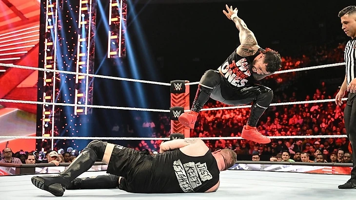 Личное мнение автора обзора: учитывая что за последние 2 года у КО и Джея Усо было аж 4 матча между собой — можно было ожидать, что это даст свои плоды по части химии. И возможно это всё-таки дало свой эффект, а вкупе с фактом недавнего мужского War Games и нынешнего нового поворота сюжета... Бой показал свою легитимность не просто как мэйн-ивент обычного или даже первого после PLE еженедельника (чем это шоу и являлось по фактическому факту), но и нечто похоже на PPV-Material. Да, тут матч не был выстроен на каких-то невероятных приёмах и даже невероятной скорости, что оба могут покзаать без особых проблем – да-да, от Усо порой также можно увидеть вполне себе высокие скорости при необходимости, серия матчей с Новым Днём в 2017 году не даст соврать точно. Но тут этого не было, так как строился фактор психологии за счёт выше перечисленные факторов – оба оппонента пострадали во время мэйн-ивента Серии Выживания и не были готовы на все 100% физически. Однако оба всё равно напирали друг друга, усиливая эффект травматичности и пытаясь показать кто из них в итоге окажется «последним стоящим на ногах» (Кстати, а тут можно было бы разыграть такую карту – назначить именно Last Man Standing Match, но это уже личное ИМХО и фанбойство). На этом фокусе и строить ключевые споты, после каждого из которых эффекта импровизированного сторителлинга работал всё сильнее и сильнее, демонстрируя железную волю к победе каждого участника боя. Дошло именно до обмена суперкиками, отчего Усо ими начал спамить в конце матча, а КО брал силовыми манёврами, хотя до коронной Pop-Up Powerbomb ему не удалось дойти из-за повреждённой спины (после промаха со Swanton Bomb в первой трети матча, там Джей блокировал полёт коленями). Да и вмешательства со стороны The Bloodline не шибко удачно сработали для Джея, что также несколько спускает самоанцев и Сэми Зейна с небес на землю. И раз уж КО всё-таки готовят к новой, пусть и краткосрочной программе с Романом Рейнсом (несмотря на некоторые проблемы после мэйн-ивент Survivor Series: War Games между ними), то нужно создавать моментум для Оуэнса, если уже он первым пойдёт на Рейнса после поражения фейсов синего бренда от The Bloodline. Для дальнейшей истории тут всё и складывается на перспективу, если это правильно подадут.