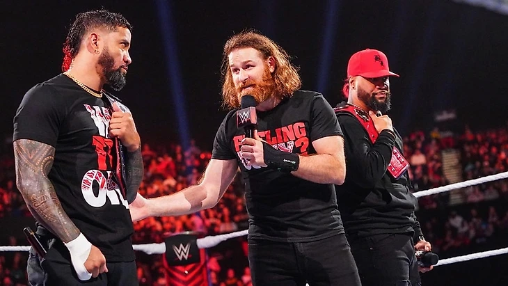 Сам Сэми ответил Кевину, что это взаимное чувство — он также больше не хочет быть с ним рядом, в команде или в его тени — неважно. Зейну больше не нужен Оуэнс и у него теперь новая семья в лице The Bloodline, c которым он прошёл всю непростую, но полную дистанцию от и до. Однако даже так Кевин дал понять Сэми, что даже случившееся не даст Сэми чувства счастья. Как бы The Bloodline не пытались принимать его за все поступки и решения в их пользу ради этого самого признания – Зейн никогда не станет их частью, так как он не их кровь (панч в сторону вечных старых тирад Джея Усо к Сэми). Тут за своё слово взялся Джей Усо, говоря Сэми сделал всё во имя The Bloodline и заслужил право быть с ними, а у Кевина же ничего подобного не осталось за плечами. И если Кевин хочет дальше иметь проблемы с Сэми, то эти проблемы коснуться и всех остальных в The Bloodline, так как они все — семья. И Джей лично готов устроить взбучку КО. Последний же указал, что Джею повезло, ведь у него нет более проблем с «Сэми Усо», зато с Джеем таковых полным-полно. Так что КО хочет отдать должное Джею сегодня вечером, за то что случилось на Военных Играх. Джей принял вызов и матч был анонсирован как мэйн-ивент выпуска (Хоть вектор сегмента и был очевиден, но также он принял довольно любопытный оборот — в том что Кевин и Сэми показали, что отныне они отреклись друг от друга, причём КО признал суть поступка Зейна, в том что Сэми больше не хочет терпеть того, когда и как Кевин снова предаст его, несмотря на 20 лет связи в их карьерах между собой. Это довольно неожиданный ход, который избавил от излишней натянутой драмы, что Кевин будет биться за душу Зейна. Не сказать что этого не будет вообще, но по крайней мере Оуэнс будет создавать проблемы вокруг The Bloodline, чтоб заставить Романа Рейнса лично взяться за КО своими руками. Пока что сложно прогнозировать то, как будет складываться вся дорога с сегодняшнего дня и по пути к Королевской Битве, к первой контрольной остановке перед главной дороге к Мании, но дежавю с 2020 года точно нас ждёт. И возможно что в этот раз КО будет не один, ведь Brawling Brutes точно так просто не отстанут от самоанцев, если слухи о программе между Рейнсом и Шеймусом являются правдой. Что до сегмента – то Сэми Зейн всё-таки добился своего признания, как это и было очевидно, по крайней мере теперь он точно не белая ворона в этой стае, да и Джей таковым не станет из-за своих вечных подозрений. Да и сам сегмент конечно стоит того, что именно его просмотреть, одно из самых естественных что есть сейчас среди прочих сторилайнов).