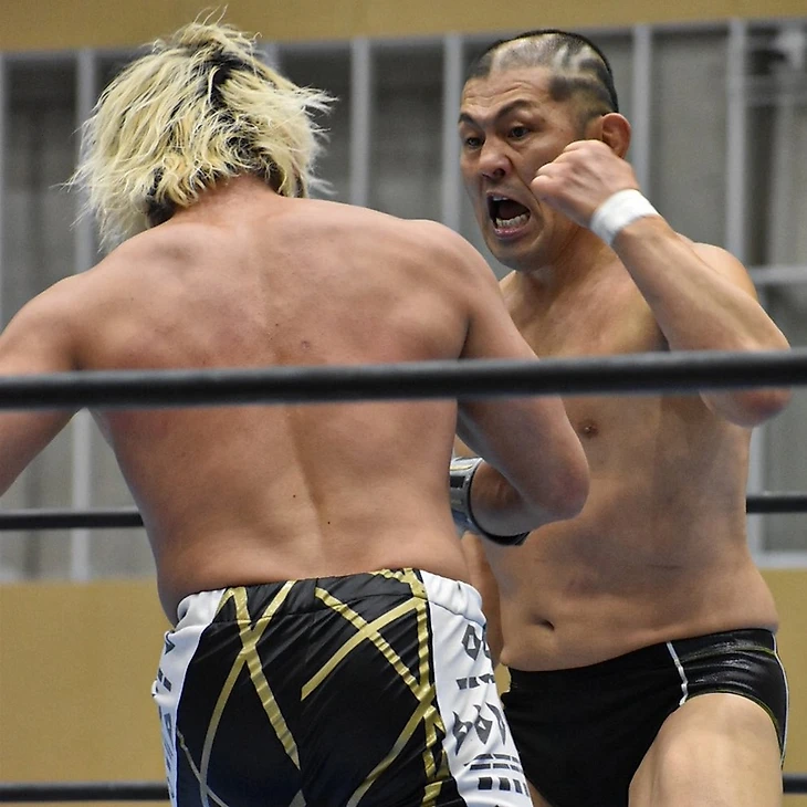 Начинают Накашима и Ойва с активного размена ударами. Смена на Либе и Фуджиту. Попытался атаковать чопами Косей, но снес его просто Оскар. Командная работа от Оскара и Хонмы, серия чопов от Хонмы, смена на Юто, скуп слэм, кимура от Накашимы. Добирается до канатов Ойва. Забивает соперника Юто, бросок через бедро, смена на Хонму. Хонма просто требует, чтобы Ойва его бил, однако лишь дропкиком после реверса суплекса от Хонмы удалось Ойве сбить Хонму с ног и смениться на Макабе. 10 ударов в углу ринга, чопы от Хонмы впитывает Тоги и сносит его шоулдер блоком, серия реверсов, ДДТ и Кокеши от Хонмы. Смена Хонмы на Оскара, Либе сносит Макабе, скуп слэм Ойве, скуп слэм Фуджите, командная работа от бригады Хонмы, фирменный лэгдроп от Оскара, до двух. Забивают его в ринге молодые львы Макабе, размен ударами с Макабе для него ничем хорошим не кончается, скуп слэм, кинг конг ни дроп, до трёх.