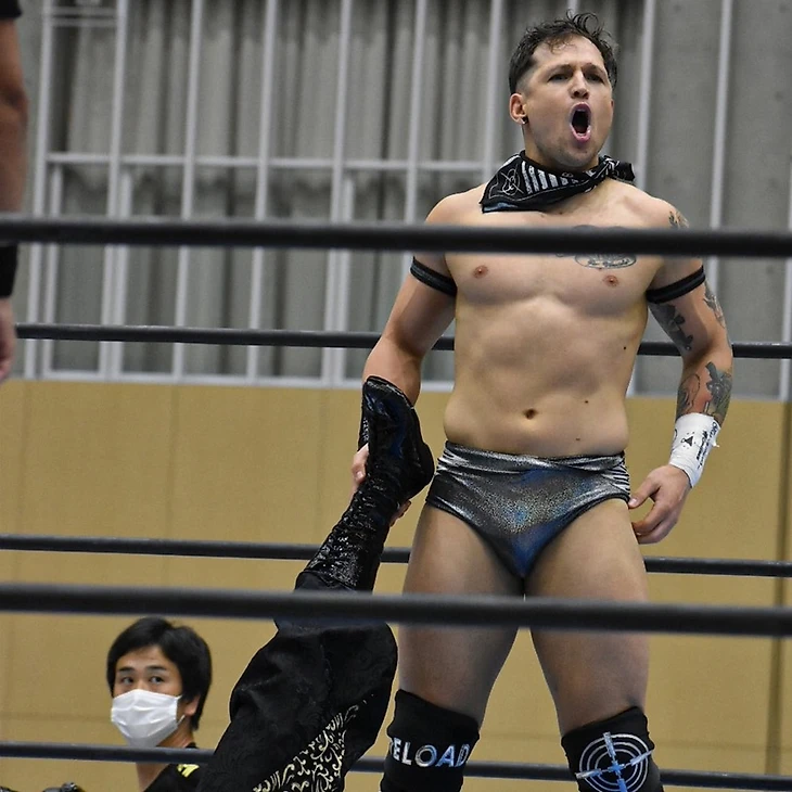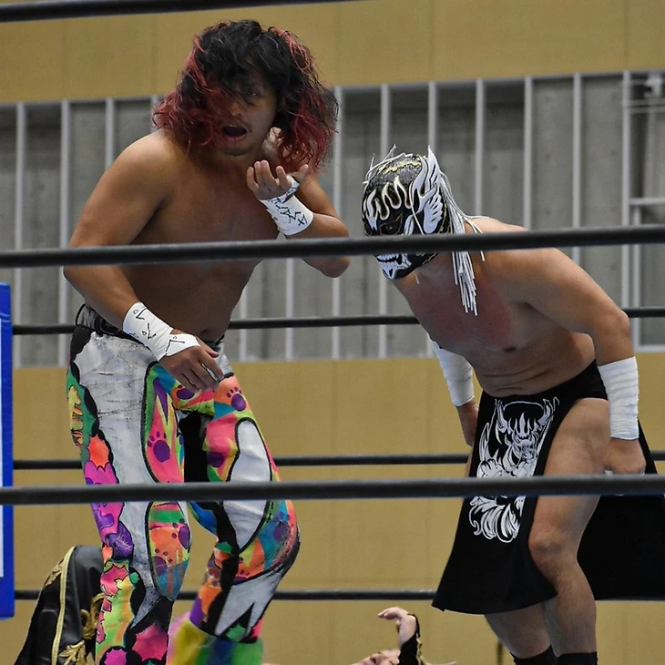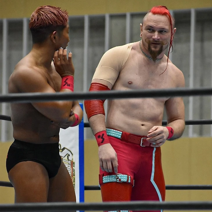 Шестой матч вечера: Suzuki-Gun (Доуки и Йошинобу Канемару) против Flying Tiger (Робби Игглза и Маски Тигра) (Super Junior Tag League 2022).