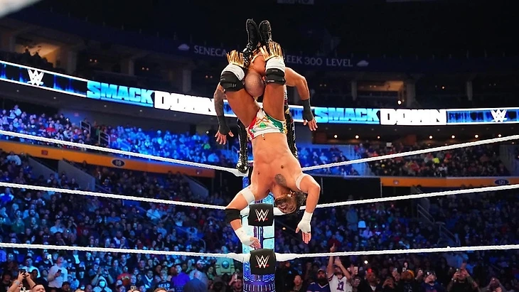 Победитель и обладатель Smackdown's World Cup 2022: Рикошет (он победил после 630 Senton, до этого проведя связку из High Knee и парочки киков в голову).