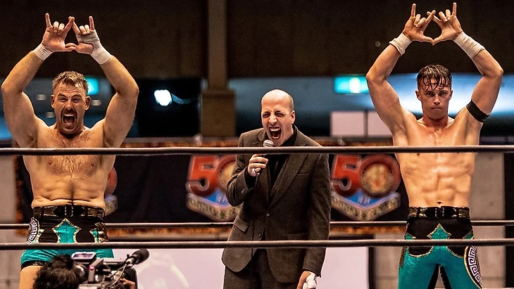 Пятый матч вечера: Гэбриэл Кид и Алекс Коглин против Los Ingobernables de Japon (Санады и Тетсуи Найто) (World Tag League 2022).