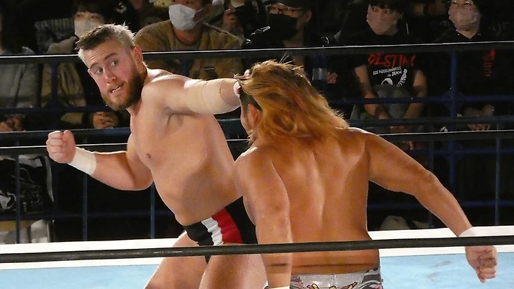 Девятый матч вечера: Aussie Opern (Марк Дэвис и Кайл Флэтчер) против Los Ingobernables de Japon (Санада и Тетсуя Найто) (World Tag League 2022).