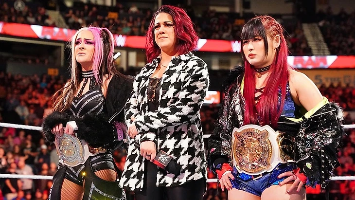 Damage CTRL в полном составе появились на шоу. Бэйли поздравила с новым годом «Трэшвилл», что местной публике не понравилось. А рестлерша напомнила, что именно в этом городе в прошлом году на SummerSlam зародась группировка Damage CTRL. Так что фанаты должны быть благодарны ей за то, что хоть что-то хорошее вышло из Нашвилла. Бэйли попросила толпу не портить этот момент. Она не может представить себе лучшую компанию, чтобы встретить новый год, чем ИЙО СКАЙ и Дакота Кай - ее кумиры, лучшие подруги и женские чемпионки WWE. Но перед тем, как начать праздновать, Бэйли хочет разобраться с «ирландским слоном в помещении». Да, Бэйли победила Бекки Линч. Бэйли не станет говорить, что это было легко, потому что Линч все-таки одна из лучших рестлерш в мире. Но это однозначно было весело. Причем Бэйли уверена, что одержала победу самостоятельно. Она настолько хороша, что победила вообще всех. И тут на арене появилась сама Бекки. Она попросила Бэйли заткнуться. Та ведет себя, будтио изобрела колесо. На самом же деле, Бэйли крутится в беличьем колесе, каждую неделю повторяя одно и то же. Линч назвала Бэйли трусом и мошенницей, которая не способна ничего сделать без посторонней помощи.