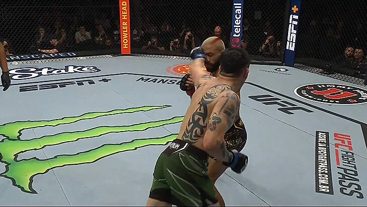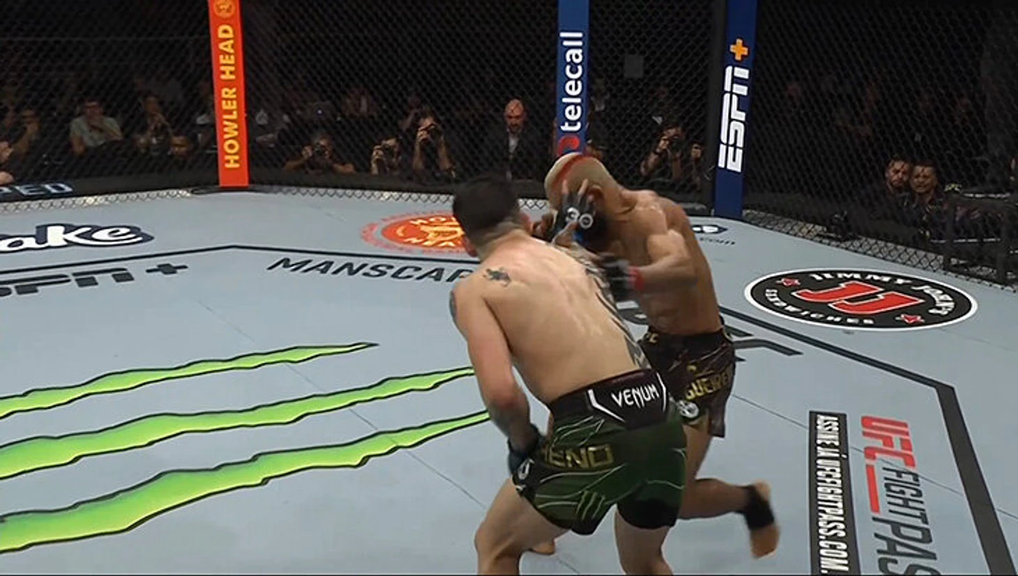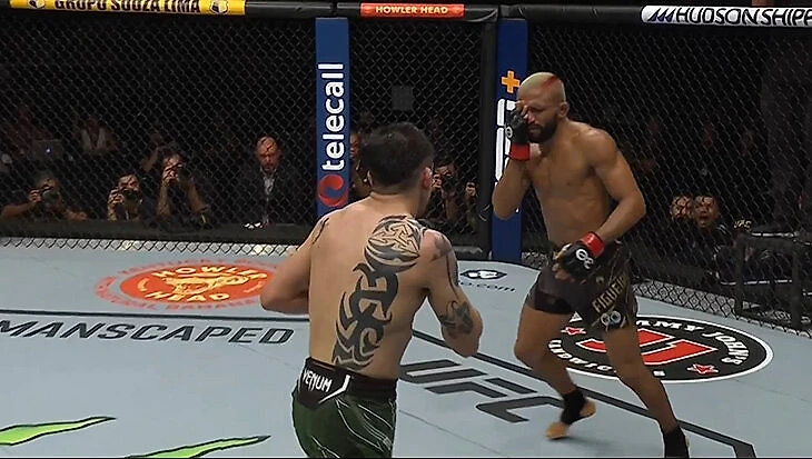 На повторах видно: Морено ударил левой рукой и поставил рассечение, а затем правой – раскрытой ладонью. Он попал пальцами в лицо Фигейредо, поэтому тот обращался к рефери. Но рассечение открылось после легального удара кулаком. Тогда Фигейредо сразу схватился за лицо.
