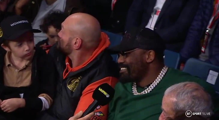 Забавно. Еще в декабре-2022 Тайсон Фьюри и Чисора дрались на стадионе «Тоттенхэма» (Фьюри победил техническим нокаутом), а теперь мило болтают.