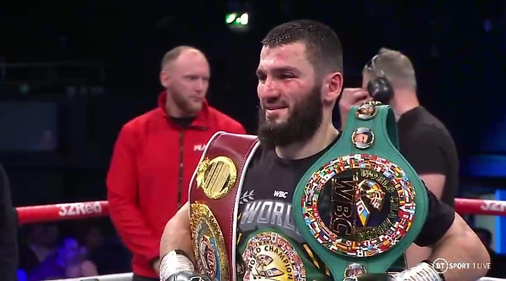 • Бетербиев защитил чемпионские пояса по версии WBC, IBF и WBO в полутяжелом весе.