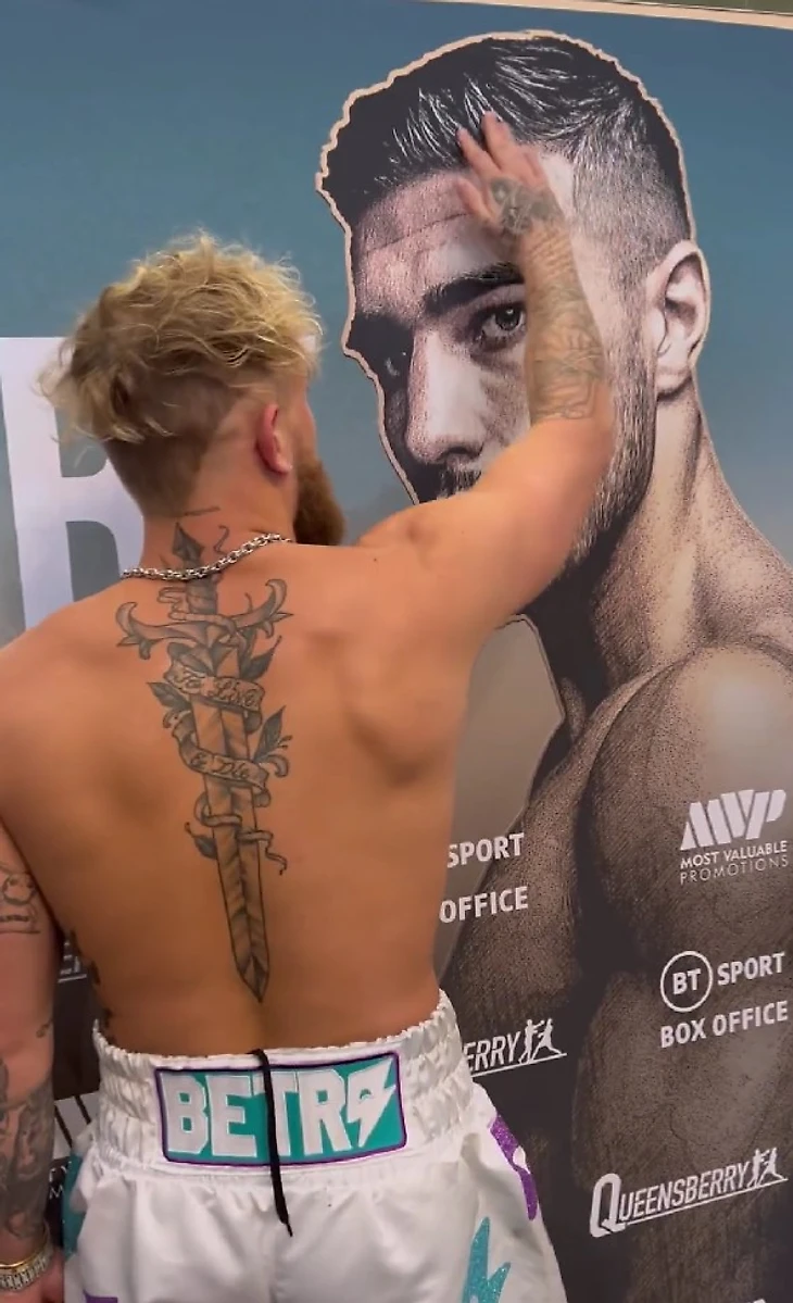 Блогер Джейк Пол тоже в Лондоне. Гладит плакат с изображением брата Тайсона Фьюри Томми: 26 февраля они подерутся в Саудовской Аравии.
