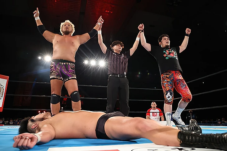 Пятый матч вечера: Just 4 Guys (Доуки, Йошинобу Канемару и Таичи) против United Empire (Франческо Акира, Аарон Хенаре и Уилл Оспрей).