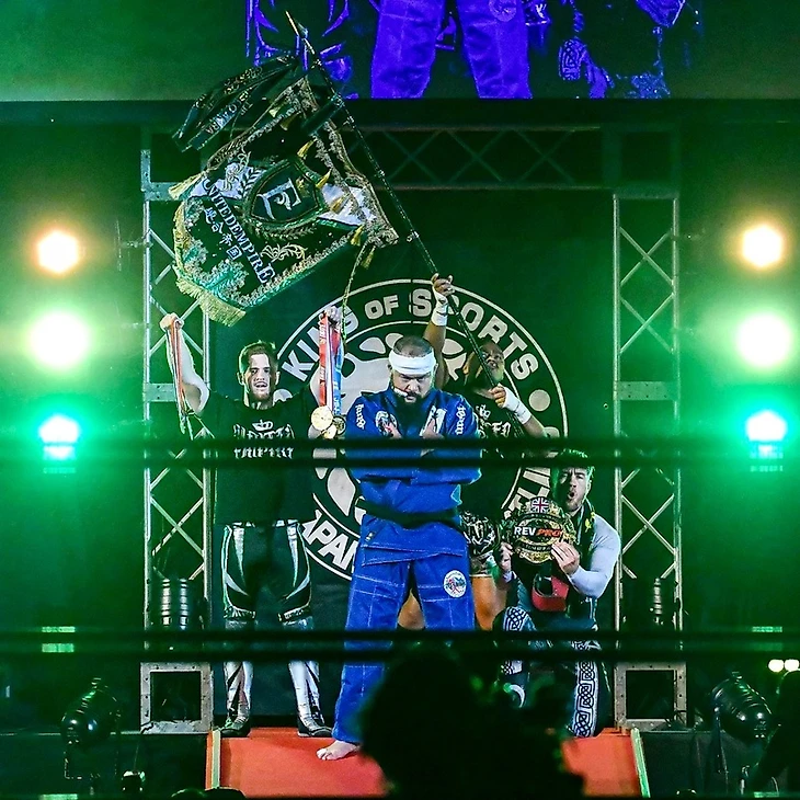 Ринг окружают представители Империи и Ингобернаблес. Прямо на арене надевает свою зубастую капу О-Хан. Он выходит на ринг с Империей паровозиком. Как я и полагал, под Ги понимались не Ги из джиу-джитсу, а просто куртки для борьбы. В ринге, по словам комментаторов, по 4 представителя Ингобернаблес и Империи, а также Олег Болтин. Первый бросок остался за О-Ханом, отличный перекат, попытка кросс армбрэйкера не прошла. Полез за ногами Такаги О-Хан, почти поймал ни бар, у канатов спасается Такаги. Шоулдер блок и сэнтон от Такаги. Укатился на пару минут О-Хан за ринг, Имперцы дали ему спокойной собраться и вернуться. Снова манки флип от О-Хана, Твистер не прошёл, Такаги был у канатов. Снова полез за рукой Такаги О-Хан, не достал. Такаги просто раз за разом прячется у канатов. О-Хан перекатывает Такаги на растяжку, снова к канатам. Поймал О-Хан Такаги на захват Ахилла, пошли они перетягивать друг друга, разбил захват на свою ногу второй ногой О-Хан, снова к канатам. Ножницы от О-Хана, вырывается Такаги.