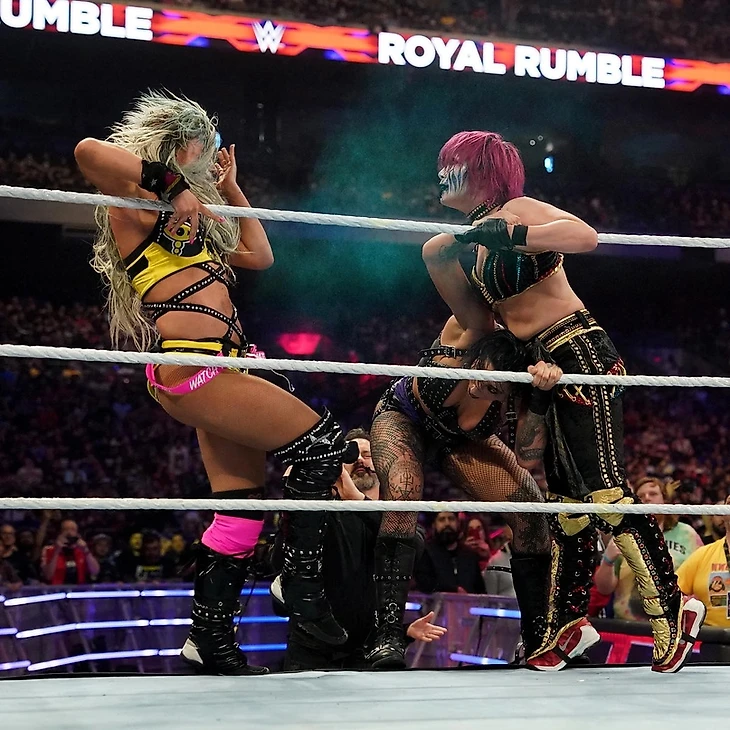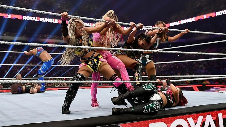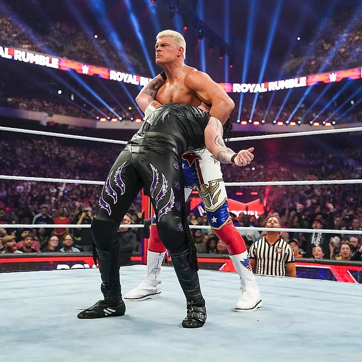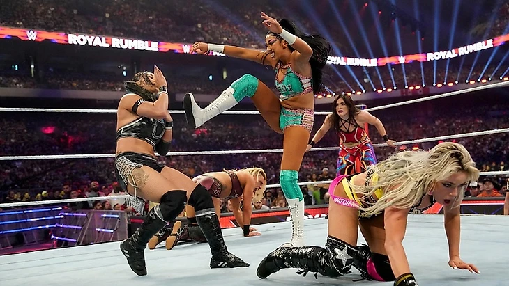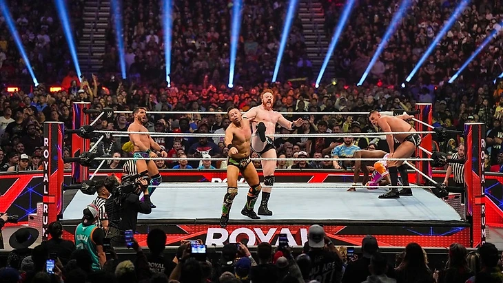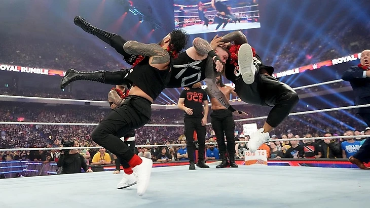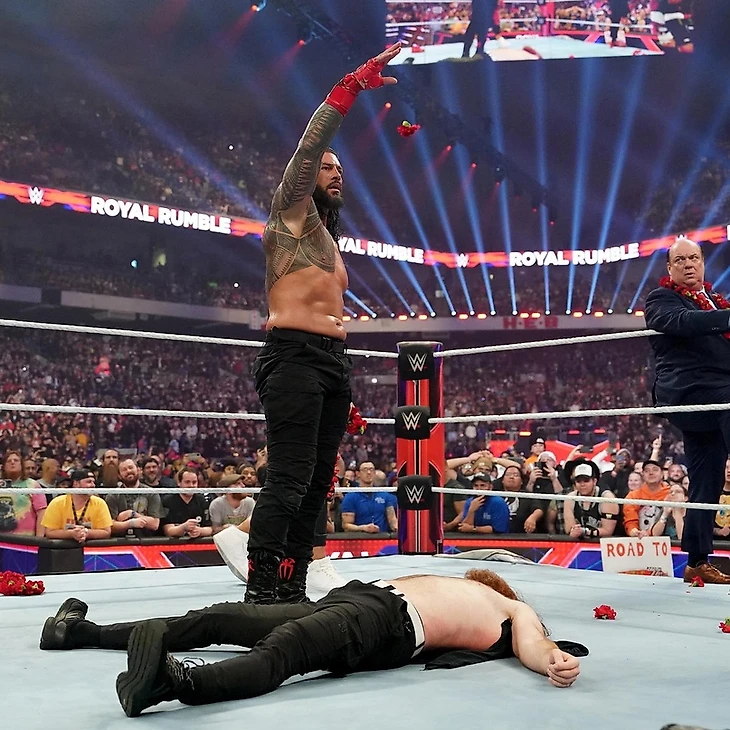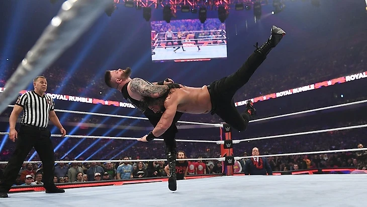 Доброго времени суток, Ассалому Алейкум, дорогие друзья! На связи Юлий Марков, и вот, в ночь с 28 на 29 января прошло шоу, которое традиционно является одним из самых интересных шоу года. В прошлом году Royal Rumble разочаровал. В этом году на бумаге PLE выглядело противоречиво: что-то выглядело максимально предсказуемо, где-то была небольшая интрига, а «инсайдеры» накидали слухов, которые если бы подтвердились, сделали бы RR совсем другим событием, 3 из 5 матчей могли получиться «бэнгерами», и среди них бой за чемпионство Вселенной, который мог стать поворотным моментом в «Саге Сэми Зейна», но были серьезные опасения, что оставшиеся 2 боя оставят очень слабое послевкусие. Как мы помним, прошлогодний Royal Rumble стал одним из худших шоу в году (из больших), и в этом году шоу могло вполне повторить этот подвиг. Но потенциал отличного шоу все-таки был. Давайте разбираться, в каком направлении пошло это платное событие. Мы в Сан-Антонио, штат Техас, на арене Alamodome, которую, если верить WWE в этот вечер посетило 51 338 человек. Шоу началось с промо-видео, которое озвучил автор музыкальной темы PLE - Харди. Когда нас поприветствовали комментаторы (Майкл Коул и Кори Грэйвз), внезапно заиграла музыкальная тема Пэта МакАфи! Он вернулся по крайней мере на один вечер, чтобы откомментировать Royal Rumble 2023. Коул был счастлив, Кори - не очень (кейфебно, естественно), особенно после того, как Пэт ему руку не пожал. Первым матчем вечера стала мужская Королевская Битва. Первый номер - Интерконтинентальный чемпион Гюнтер. Второй - его старый знакомый Шеймус. Естественно, авторы одного из лучших матчей прошлого года в WWE Начали обмениваться ударами предплечьями и шоулдер тэклами. Австриец зарядил жесточайший чоп и чуть не элиминировал соперника, но Шеймус справился, шарахнув коронный бэкбрейкер. От элиминирования Гюнтер спасся, и пошел обратный отсчет до появления Миза (#3). Он рванул к рингу, но в сам четырехугольник не зашел, потому что чуть не был атакован Шеймусом. Гюнтер хотел воспользоваться этим, но ирландец отказался выбывать из поединка, потом защитился от попытки Миза вытащить себя уже с рингсайда. Шеймуса это разозлило, он погнался за Майком (выйдя из четырехугольника через второй канат, и загнал «Эй-Листера» в ринг, прямо под чоп ВАЛЬТЕРА. Миз пару раз пострадал от ударов обоих противников, которые ему не предназначались, но и Гюнтер, и Шеймус уворачивались от ударов друг друга, а затем ИК-чемпион решил выбить из «Рамбла» своего давнего недруга, Миз попытался этим воспользоваться, и к матчу присоединился Кофи Кингстон. Он сразу забрался на третий канат, провел Гюнтеру и Шеймусу хай кросс, несколько других классических атак Мизу, которому затем на двоих с Гюнтером достался NEw Day Boom Drop. Шеймус прервало одну из атак Кофи, но не сумел выбить его из матча, и пока европейцы обменивались ударами, Миз пытался защититься от элиминирования, чем заработал себе SOS. А пятым стал Джонни Гаргано. Он сходу провел Кингстону слингшот гарпун. Добавил несколько ударов Гюнтеру и Мизу, последний вообще One Final Bit DDT получил. Джонни переправил Маа на апрон через третий канат, уступив «Эй-Листера» Шеймусу для коронных ударов в грудь. Thrust Kick в голову от Гаргано, и Brogue Kick Шеймуса элиминировал Миза. Под шестым номером вышел Экзевьер Вудс. Вместе с Кофи они провели кучу классических командных комбинаций всем, п