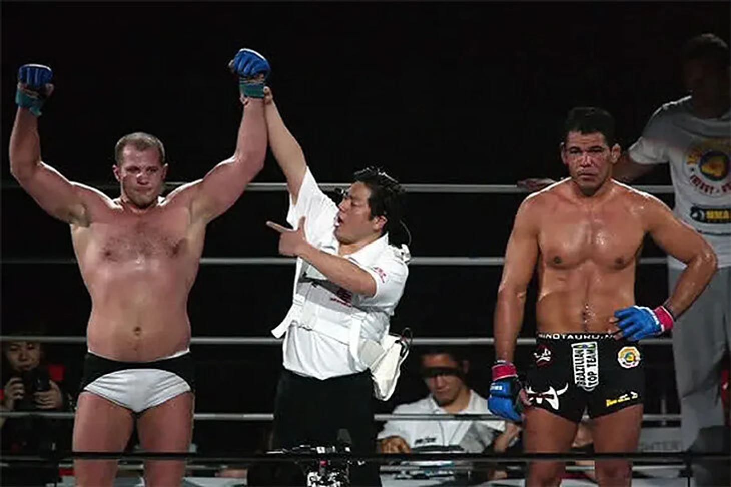 Ногейра – топовый тяжеловес: к концу эпохи Pride он выиграл 28 боев при четырех поражениях. Два из них – раздельным решением Дэну Хендерсону и Джошу Бранетту. И только Емельяненко победил Ногейру без вопросов – дважды единогласным решением.