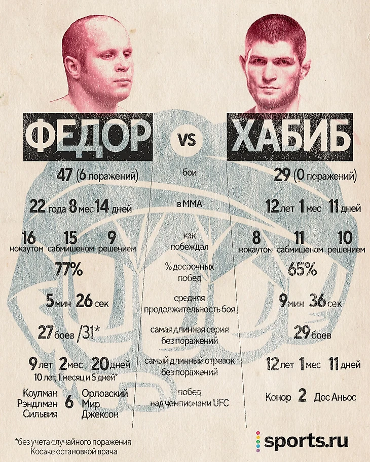 Федор vs Хабиб – у кого более великая карьера? Cравниваем цифры побед, время и бои с чемпионами
