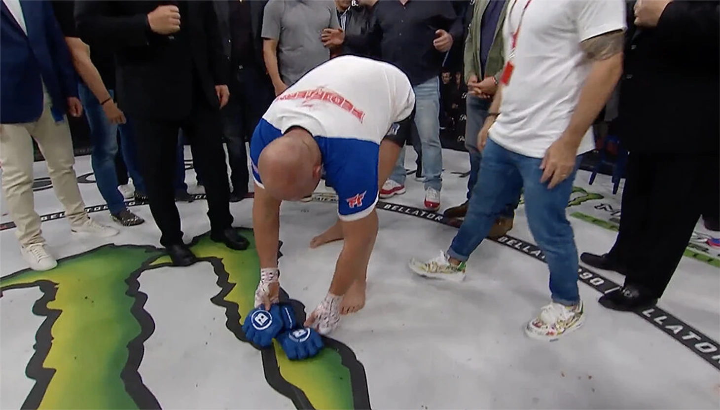 «Я закончил. Спасибо». Момент дня: Федор Емельяненко кладет перчатки на настил