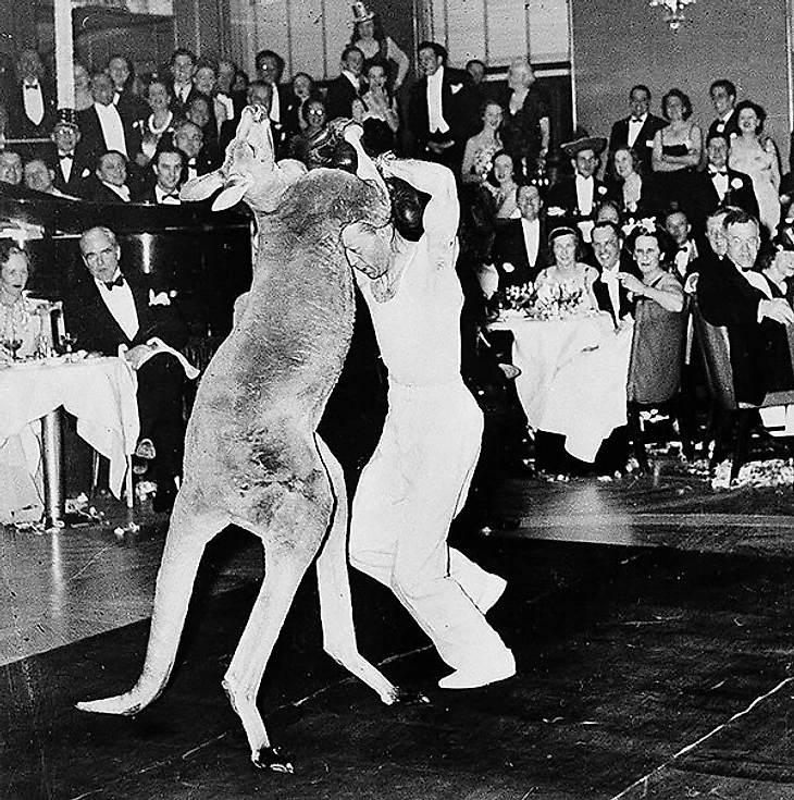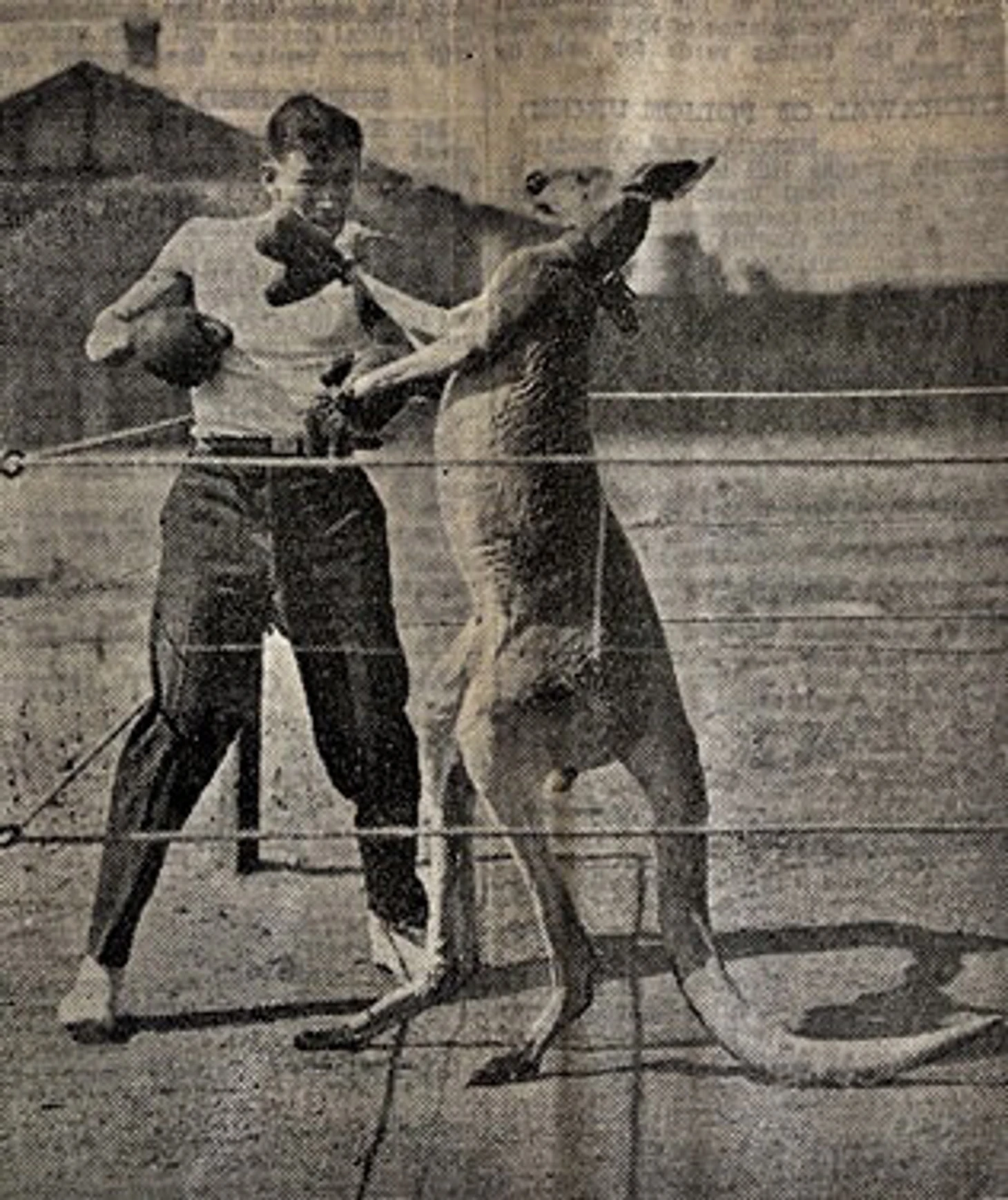 Когда и где впервые показали боксирующего кенгуру, точно не известно. Возможно, это было даже не в Австралии – одно из первых упоминаний относится к США и 1890 году. В нем говорится о кенгуру в зоопарке Филадельфии, который боксировал против смотрителей. Но это больше не полноценные бои, а шуточные постановки.