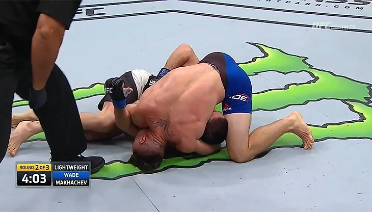 В начале второго раунда Уэйд снова был хитрее – после прохода в ноги Махачева выбрался в атакующую позицию. И вышел на удушающий – рефери даже думал, что Махачев отключился (хотя задушить из такой позиции тяжело). Ислам показал большой палец: