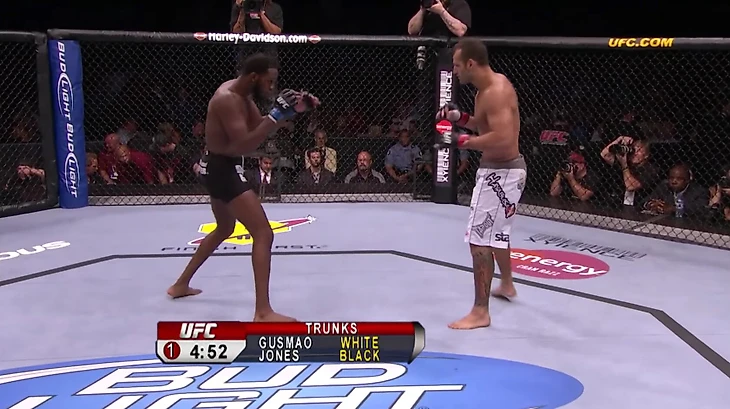 Джон Джонс перешел в ММА из вольной борьбы, поэтому прокачал ударку уже по ходу карьеры. В первом бое в UFC против Андре Гусмао в 2008 году Джонс опирался на борьбу, а в стойке выглядел зажатым.