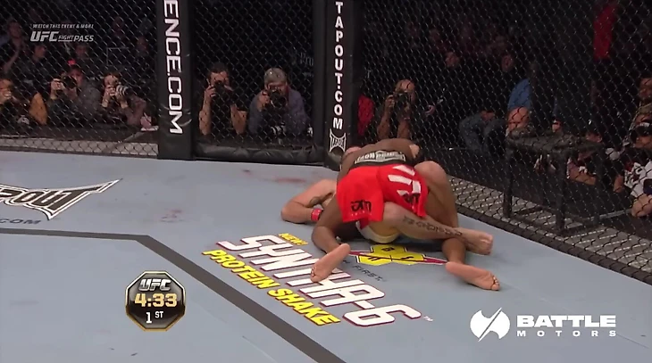 Руа не спасало джиу-джитсу, так как Джонс был слишком силен и атлетичен и генерировал невероятные удары в грануд-энд-паунде. Соперник вымотался уже после одного раунда – дальнейший финиш был логичным.
