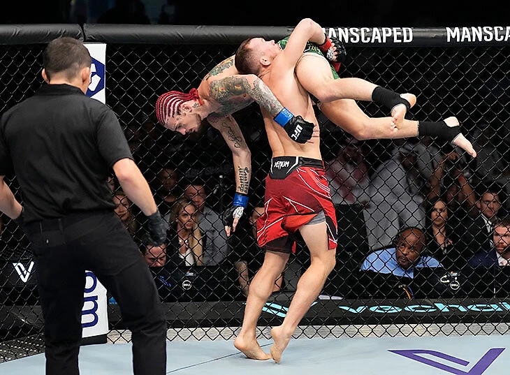 • первый бой с Алджамейном Стерлингом, когда он показал огромный арсенал различных подсечек;