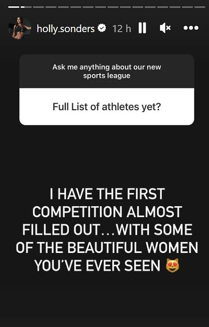 Бывший игрок в гольф и влиятельная девушка Холли Сондерс, которая в настоящее время встречается с Оскаром де ла Хойей, провела в Instagram серию вопросов и ответов, чтобы обсудить открытие лиги, в которой примут участие топлес спортсменки из самых разных видов спорта.