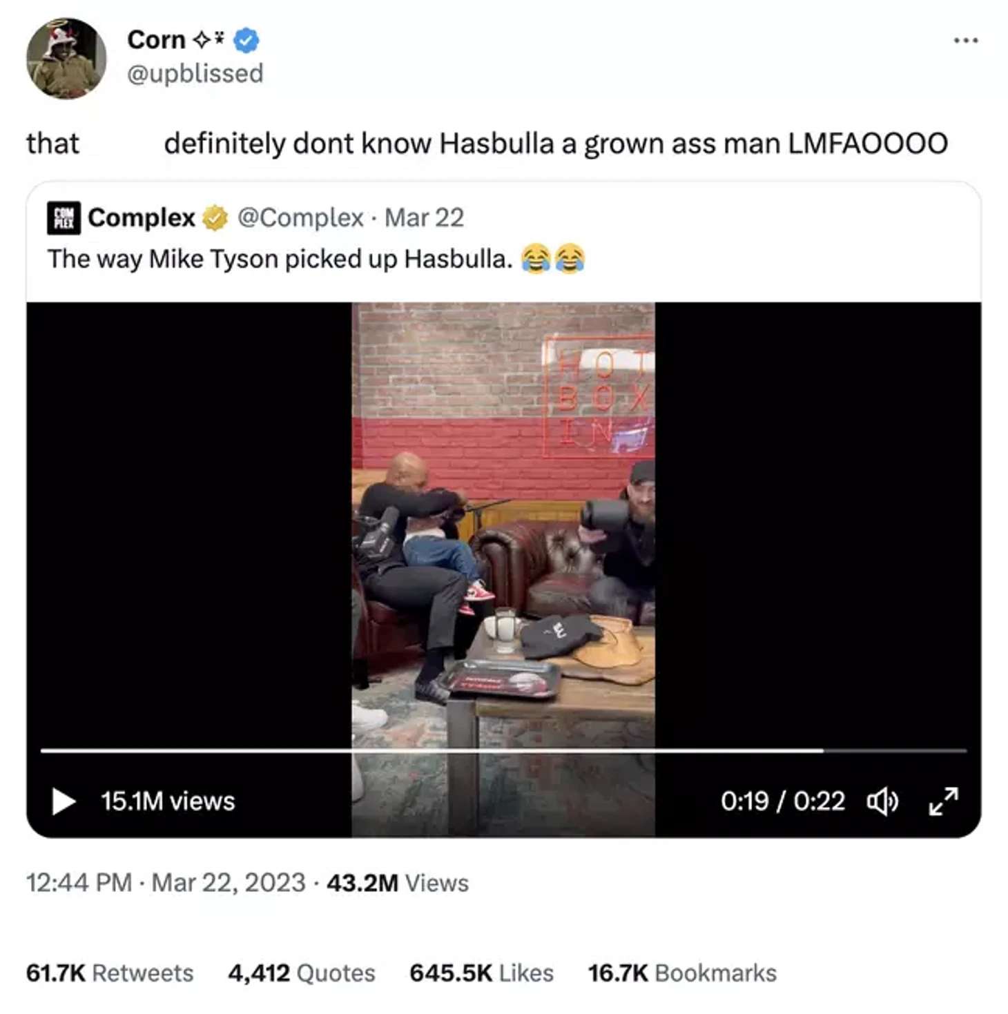 В соцсетях активно обсуждают поведение Майка Тайсона во время встречи с Хасбиком.