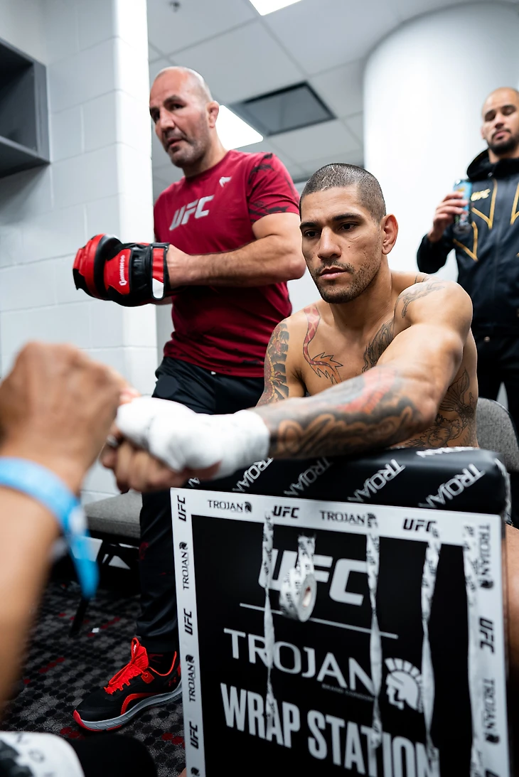 На пресс-конференцию Исраэль Адесанья пришел в собачьем ошейнике: «Я пес. Это собачий ошейник, и я скоро сорвусь с цепи». Алекс Перейра ответил: «Я сниму его ошейник и вышвырну как собаку».