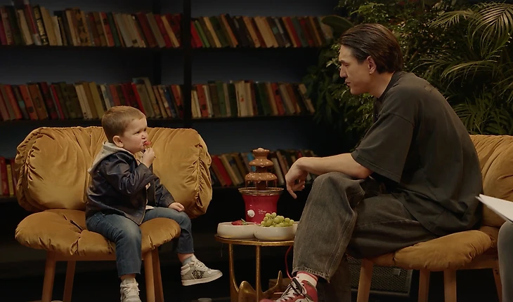 не понравилось что он без конца ел как будто с голодного края приехал или первый раз в жизни клубнику видит. в конце еще и орехами начал кидаться как маленький ребенок (лет 6-7) .