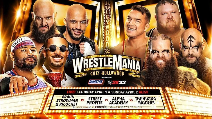 Брон Строуман и Рикошет vs The Street Profits vs The Viking Raiders vs Alpha Academy