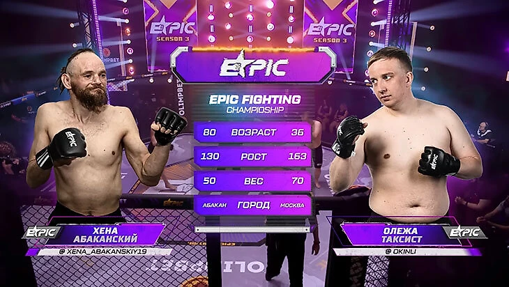 Промоушен Epic Fighting – сайд-проект главы Hardcore FC Анатолия Сульянова. Там по безумным правилам дерутся фрики: межгендерные бои, трое против одного, бойцы-пенсионеры. После долгого перерыва Epic Fighting вернулся с новым турниром.
