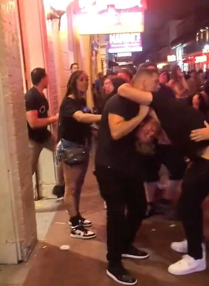 Диаза вывели на улицу, где к нему присоединилась его команда. Что произошло дальше – неизвестно. Начало потасовки на видео не попало, а момент драки с участием Диаза – сразу с нескольких ракурсов. На видеозаписи видно, как к Диазу с поднятыми руками подходит неизвестный мужчина, который сразу же попался на удушающий прием. Уже через несколько секунд он потерял сознание и упал на асфальт, разбив голову.