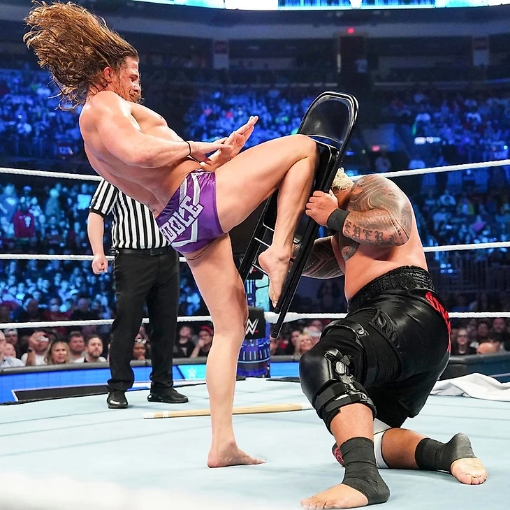 Занятно что этот матч в целом вышел получше их первой встречи неделю назад после возвращения Риддла в строй. Тут бойцы не церемонились и получили дополнительные условия для более жёсткого махача, чтоб можно было бить в полную силу. Причём именно что Соло тут показал себя по-настоящему бескомпромиссным зверем и хейтером столов (мол так он послал фанатов, требовавших стол для матча, засунув его обратно под ринг), предпочитая кендо-стики и стулья. Мэтт же предпочитал именно кендо-стики для простоты телесного урона своему визави, даже умудрялся их ломать об Соло. Не сказать что тут стоило ждать настоящего побоища, несмотря на вполне себе пристойный лимит времени в мэйн-ивенте выпуска, но Риддл с Сикоа показали что способны креативить в этом направлении. Причём именно что тут они и показали не менее брутальное сражение без использования предметов, зная что простор у них будет для экстрима в спотах. Но к сожалению сработал фактор Усо — они вмешались в матч и по сути всё свели на нет, дав Сикоа ключевое преимущество. Победил Соло после импровизированного Samoan Spike во время разгона для лариата, тип Samoan Spike Bomber (Личная оценка — 3,5). После матча Усо и Сикоа не успокоились, причём тут как раз им и пригодился тот самый стол — Усо его использовали, отдав дань уважения Dudley Boyz, проведя Риддлу 1D именно на стол. На этом по сути шоу и вышло из эфира на позитивном для самоанцев исходе.