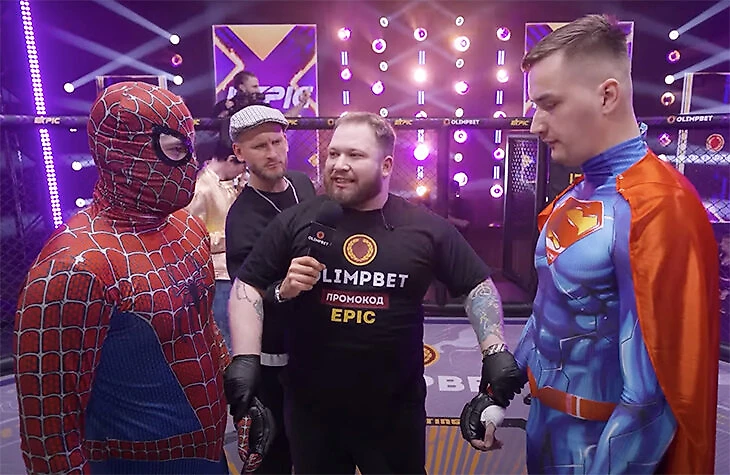 Дальше – бой Человека-паука и Супермена: первый дрался в костюме и маске, второй – в плаще. Бой проходил без партера, поэтому была рубка: Человек-паук, несмотря на внушительный живот, в третьем раунде победил нокаутом – сделал сальто и вызвал на бой Бэтмена и всех персонажей Marvel.