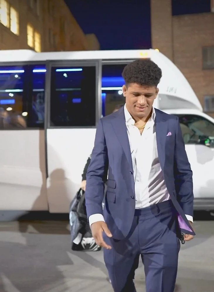 Алджамейн Стерлинг в костюме и с цепью, Генри Сехудо – на спортивном. Оба максимально спокойны и собраны.