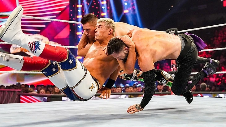 Миз против Коди Роудса против Финна Балора - матч первого круга турнира за чемпионство мира в тяжелом весе.