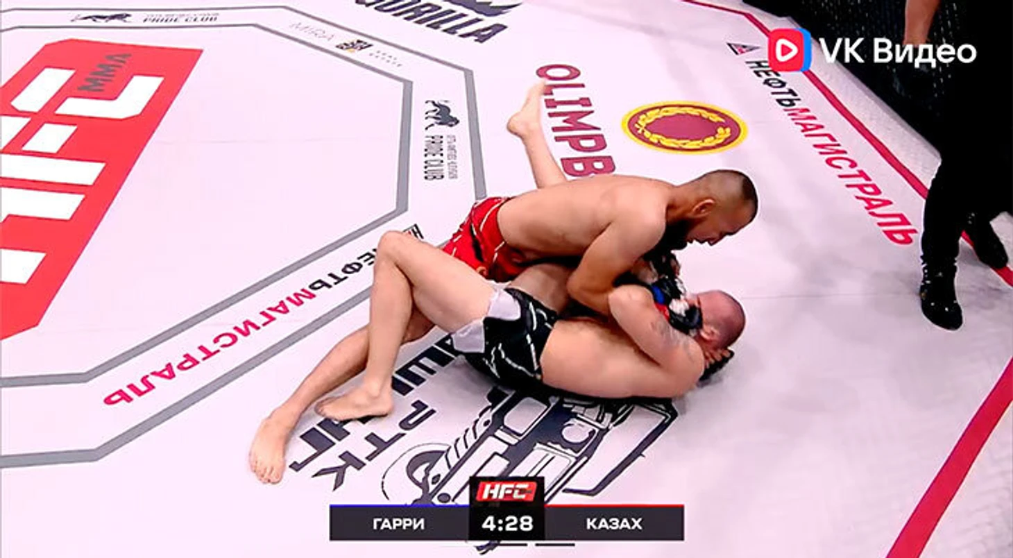 Первый яркий поединок прошел задолго до главных боев вечера. Багдат Дюсембаев, известный фанатам поп-ММА под прозвищем «Казах» (до Hardcore дрался в Top Dog), вышел на коротком уведомлении против Игоря «Гарри» Барабанова. Для Дюсембаева это был важный бой – первый после того, как в феврале-2022 в Москве его расстрелял на парковке охранник фитнес-клуба (бойца госпитализировали с огнестрельными ранениями).