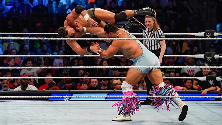 1) Остин Тиори победил Шеймуса, защитив чемпионство США WWE. Бой был назначен неделю назад из-за стычки Тиори с Шеймусом, когда Остин упоминал его в своём кратком промо о фиаско в турнире за чемпионство мира в тяжёлом весе. В некоторой степени матч-откровение, учитывая что тут Тиори приблизился к тому, чтоб спустя долгое время чисто и уверенно защитить титул без сторонних манёвров. Чтоб 1 на 1, но вырвать себе победу и защитить титул. Однако Шеймус оказался настроен не просто проучить наглого юношу с высоким ЧСВ, но и показать что все его заслуги как чемпиона ничего не значат и что он не чемпионского материала. Так что грубый стиль броулинга и страйкинга ирландца удачно обходил и перебивал силовые манёвры чемпиона, который используя всё пространство ринга бил внезапно и чаще всего в спину. Остину удавалось постоянно атаковать именно внезапно и тогда, когда его оппонент этого не то что не видит, но и не ожидает. Тем более что на старте боя Тиори не удалось перебороть в грэпплинге Шеймуса, ибо просто физической мощи не хватило у чемпиона так просто свалить Шеймуса. А последующие унизительные выпады чемпиона лишь разозлили ирландца и тот пошёл во все тяжкие, одновременно выводя Тиори на вполне себе пристойный бой. Удивительно что по сути Шеймус сделал именно ту работу, которую должен был сделать Джона Сина на недавней Мании — он и себя показывал достойно на уровне, и продавал чемпиона публике равным себе. И оба могли выдать куда лучше зрелище даже в рамках ТВ, но их роль оказалась тут ограниченной временем. А закончился матч... нападением от Pretty Deadly на поддерживающих Шеймуса Бутча с Холландом – Шеймус не смог оставить своих братанов в беде и атаковал Кита Уилсона на апроне, а Тиори взял и просто свернул ирландца до 3 с фиксацией через трусы на его лопатки (Личная оценка — 3,5);