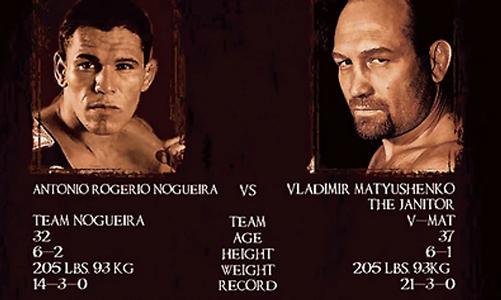 Опытнейший белорусский ветеран Владимир Матюшенко не проигрывал уже более пяти лет, в последний раз победить его смог соотечественник Андрей Арловский. С тех пор оппозиция у Владимира была далеко не самая сильная, однако восемь побед подряд � это достаточно хорошая причина для получения боя с серьезным соперником, которым, без сомнения, является бразилец Ногейра . Сам Матюшенко уже заявил, что этот бой � лишь первый шаг в организации, а прошагать он надеется далеко.
