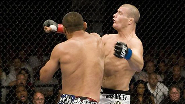 Поиск каких-то замысловатых интриг и подводных камней в первом титульном бою этого вечера � дело неблагодарное. Все в данном случае очень просто: один отличный и один выдающийся боец встретились, чтобы решить, для кого из них 11 июля станет одним из худших дней в карьере. Тиагу Алвеш последний раз проигрывал три года назад, а его блестящая ударная техника в лучших традициях тайского бокса и семь побед подряд, большинство из которых ТКО вывели его на этот бой отнюдь не мальчиком для битья. Сен-Пьер в одном из интервью скажет, что Алвеш, возможно, самый сильный соперник в его карьере, и это мы слышим от человека полгода назад разобравшего Би Джей Пенна. В свою очередь бразилец заявил прессе, что планирует нокаутировать чемпиона. Вопрос был только в том, как долго Сен-Пьер позволит работать своему сопернику в стойке, где тот представлял действительно серьезную опасность.