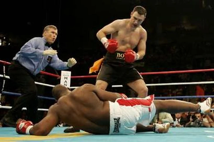 Правая по корпусу от Виталия. Кличко-старший уже потихоньку гоняет Сосновского по рингу. А тот и не против � главное-то выжить.