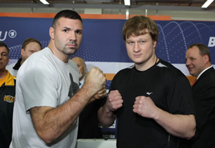 Майкл Баффер объявляет участников. Начинается с представления «Каменного мужика» из Огайо с русским именем. А вот и до Александра речь доходит: Александр «Заша» Поветкин.