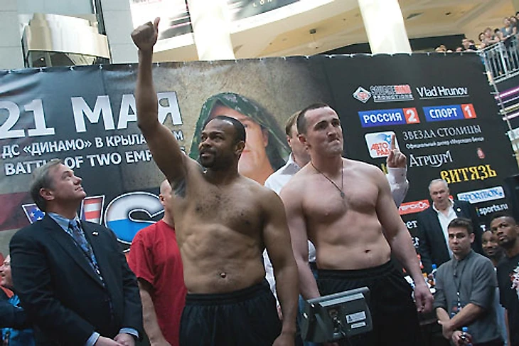 16.56. И как бы кстати о взвешивании. К нам, конечно, приехал совсем не тот Рой Джонс, что зажигал в 90-х и начале 00-х, но зато так много его до нас еще никто не получал. Даже Лас-Вегас, где Джуниор дрался за титул в супертяжелом весе с Руисом в 2003-м. Так вот, вчера Рой показал на взвешивании результат 89.9 кг. Это максимальный вес в карьере американца.