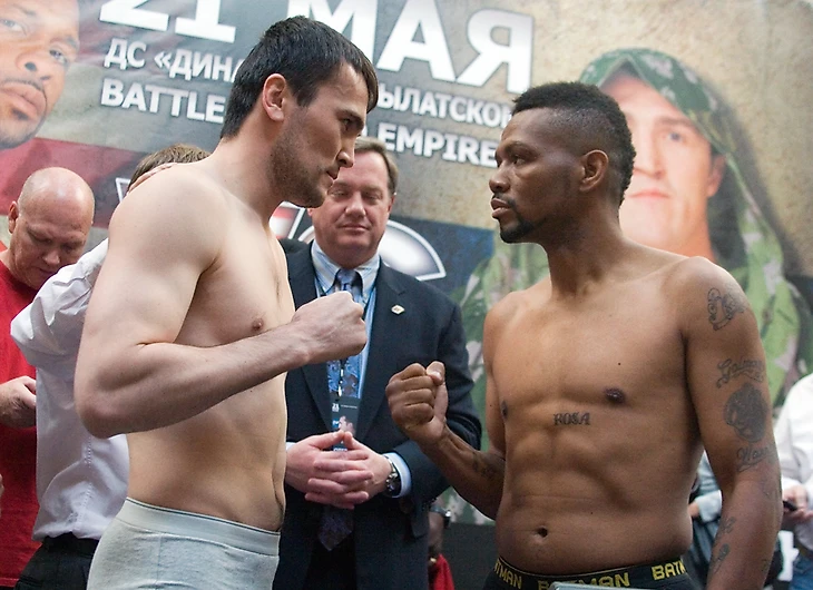 Бой в первом полусреднем весе (63,5 кг): Нэйт Кэмпбелл (Джексонвилль, СШ) VS Шерзод Назаров (Санкт-Петербург, Россия).