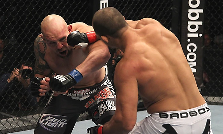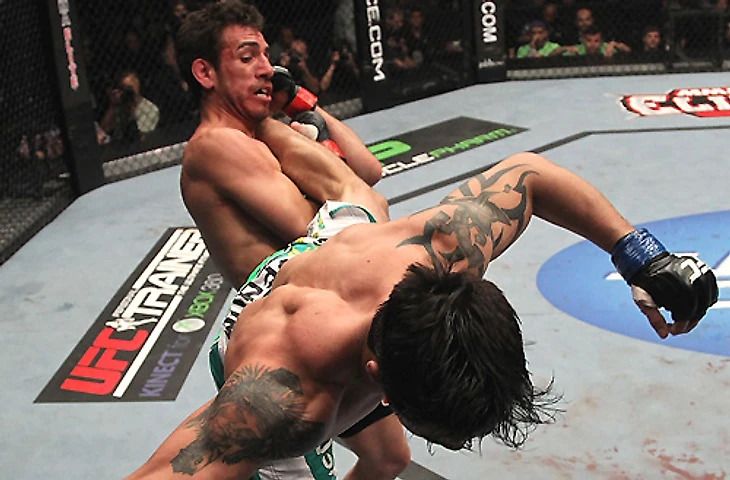 Тяжело любить Кенни Флориана, он все же нудноват для бойца. Только на лицо взглянуть: его будто до поединка немного побили в раздевалке «большие пацаны». Но зануды нередко оказываются людьми крепкого характера, и в бою с Нуньесом это подтвердилось. Решительно неинтересно было смотреть, как Флориан методично выполняет план на бой, высасывая силы из бразильца. Занятно было другое – как от раунда к раунду менялось лицо Нуньеса. Это характерная особенность многих южан: взрывной старт и падение духа, если не получилось взять свое в первом раунде. Бой Флориана был не настолько хорош, чтобы его смотреть, но вполне сгодился, чтобы полюбоваться, как работает эта теория.