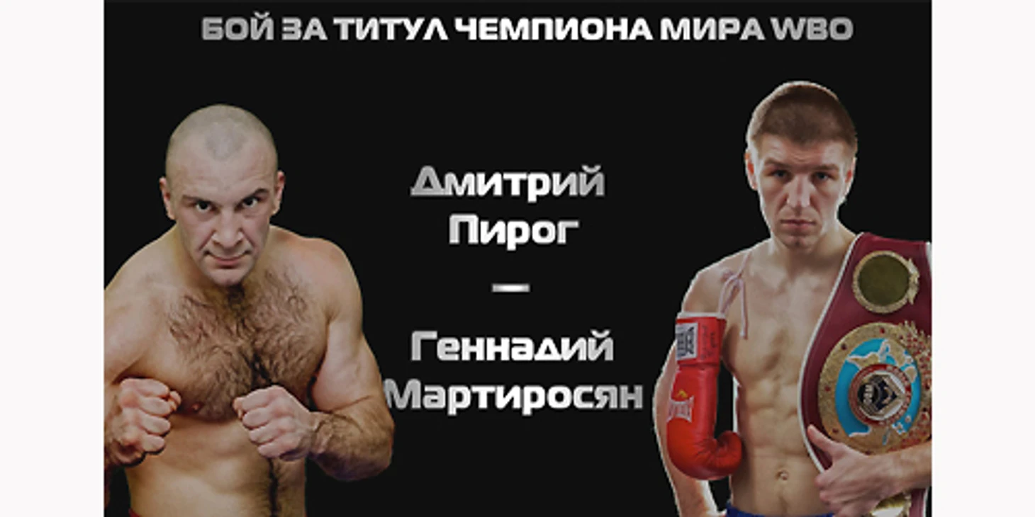22.30. Добрый вечер! Мы начинаем трансляцию боя за титул WBO в среднем весе между Дмитрием Пирогом (Россия) и Геннадием Мартиросяном (Россия), который состоится в Краснодаре.