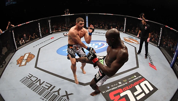 После боя он взял микрофон и, не обращая внимания на вопросы Джо Рогана, назвал присутствующего в зале Сен-Пьера испугавшимся. Жорж и впрямь выглядел не очень уверенно, хотя он и Косчеку словесные поединки проигрывал вчистую, а потом раздробил ему глазницу. Оставьте Андерсону Силве Соннена, у нас появился революционер в полусреднем весе, а у Сен-Пьера среди соперников кончились зануды.