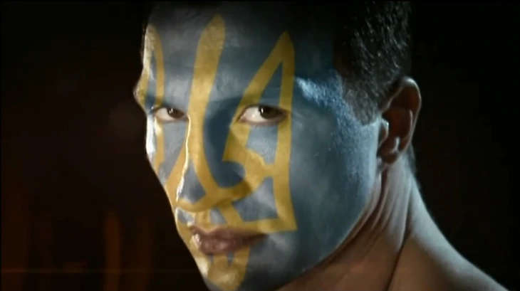 1.06. Из-под национального герба Украины под фирменное музыкальное сопровождение появляется и сам суперчемпион.