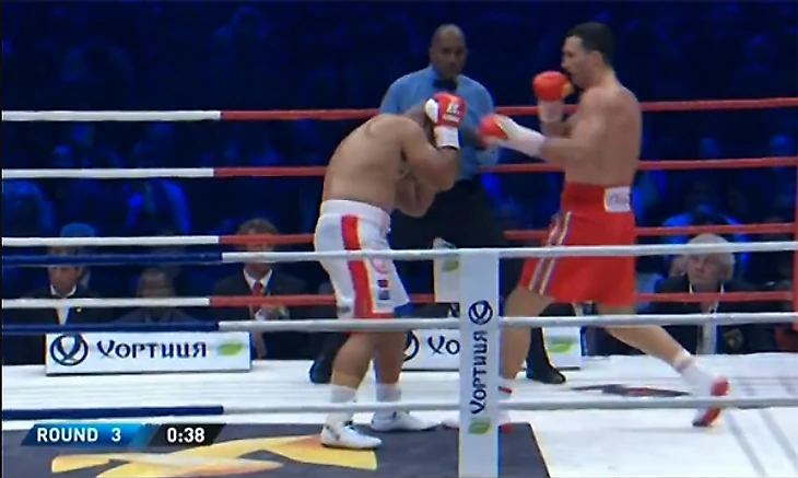 4-й раунд: можно просто сказать «+1», а можно еще раз подивиться стойкости самоанца, с упорством, достойным не лучшего применения, а просто восхищения, принимающим наказание от украинца. 10-9 – Кличко