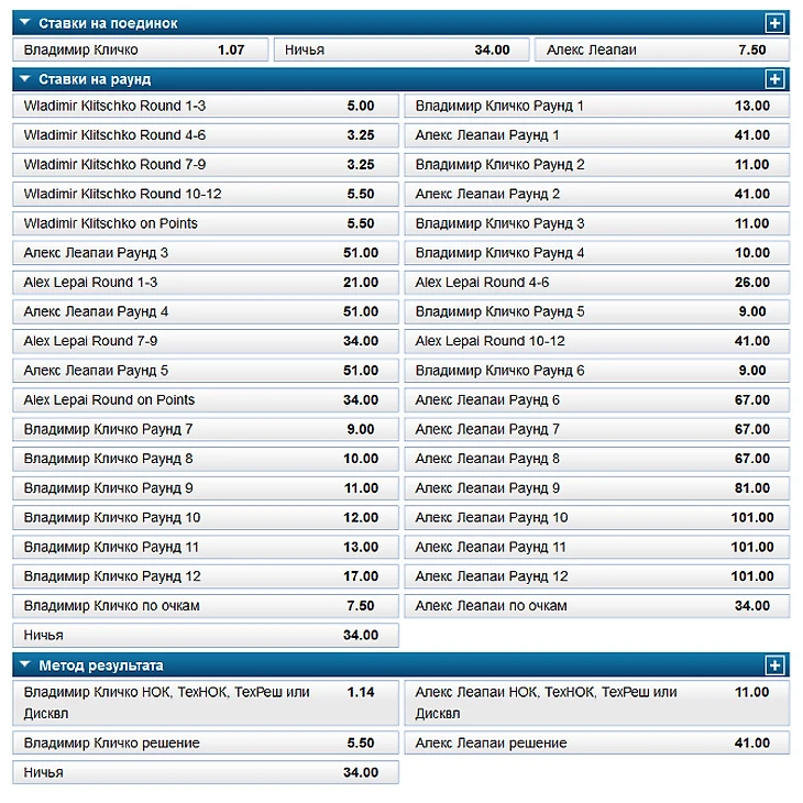 0.20. В букмекерской конторе William Hill не сомневаются в победе Кличко: