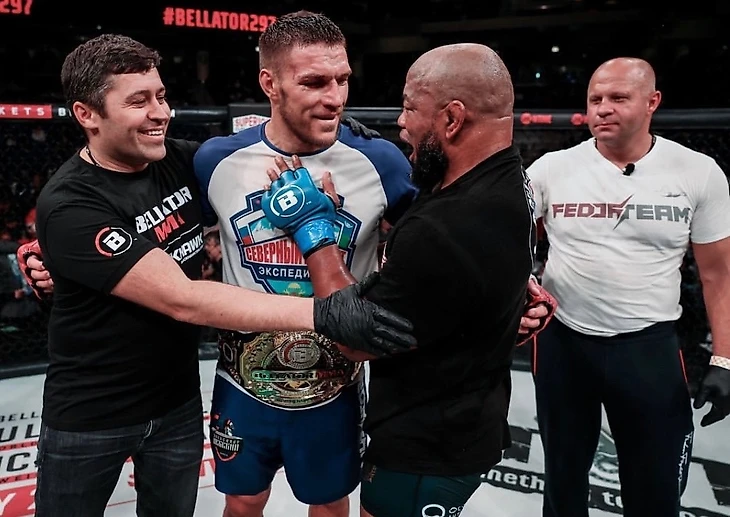 В Беллатор, десант из 5 россиян привёз 4 победы. Вадим Немков, ожидаемо, победил, неожиданно, не удосрочив, Йоэля Ромеро. Кубинский дедушка продолжает творить историю, достойно выступая на самом высоком уровне в 46 лет, а Вадим укрепляется в статусе сильнейшего бойца вне UFC, как минимум, по моей версии. Так-же в со-главном бою, 1 номер Р4Р организации - Патрисио Фрейре проиграл, в объединительный бой, Серхио Петтису, и по логике, должен уступить корону организации Вадиму, который шёл вторым. Одно пугает, рейтинг Беллатор составляется так, что в него лучше вообще не смотреть впечатлительным, могут и не поднять Вадима. А, вот, махачкалинский отряд не подвёл. Тимур Хизриев, Гаджи Рабаданов и Рамазан Курамагомедов сделали 3-0 и спокойно возвращаются домой. Гаджи, пока мало знаменит, хоть и является одним из основных спарринг партнеров Хабиба и Ислама, оставшиеся двое, и того незаметнее, но их потенциал огромен, и если Беллатор не начнёт их морозить, давая «мешков» раз в год, то они очень быстро разгонятся и зачистят свои дивизионы. В ближайшем будущем планирую написать о них подробнее. Ложка дёгтя тоже была. Шамиль Никаев, чеченский проспект с бельгийским гражданством, уже давно живёт в США и тренируется у Генри Хуфта, потерпел первое поражение, от парня, который даже не входит в топ-10 своего веса данной организации. Однозначно, главный аппсет турнира.